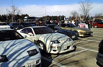 ![]() 途中、第二次集合場所となった東北道都賀西方PAにて。 どこからか運ばれてきた雪の塊が駐車場のあちこちに見られる中、さらに各地から合流してくるZたち。 |